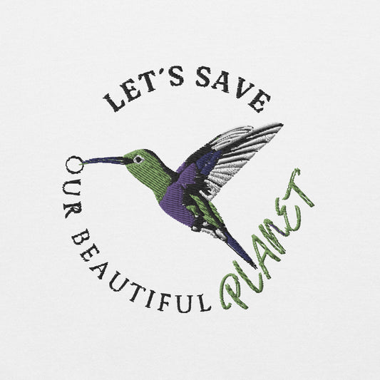 Sweatshirt with "Let's Save Our Beautiful Planet" Hummingbird Embroidered Design