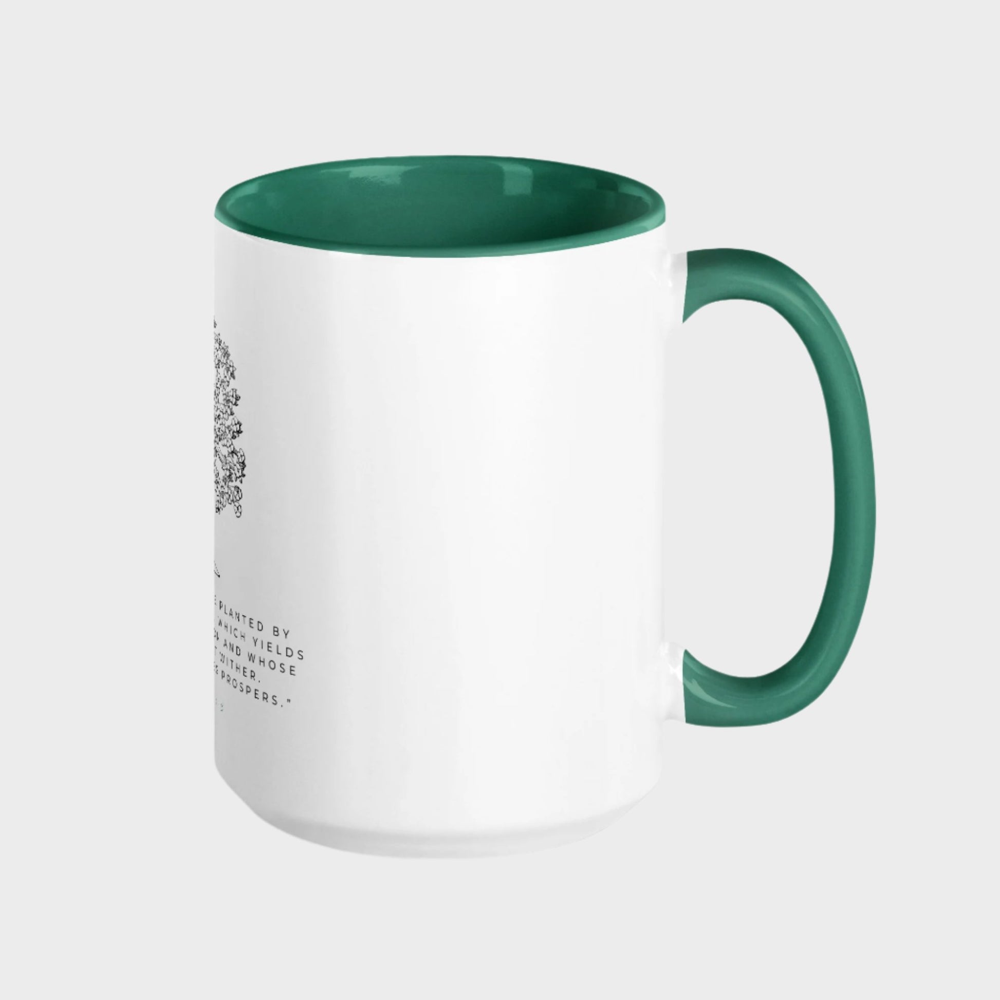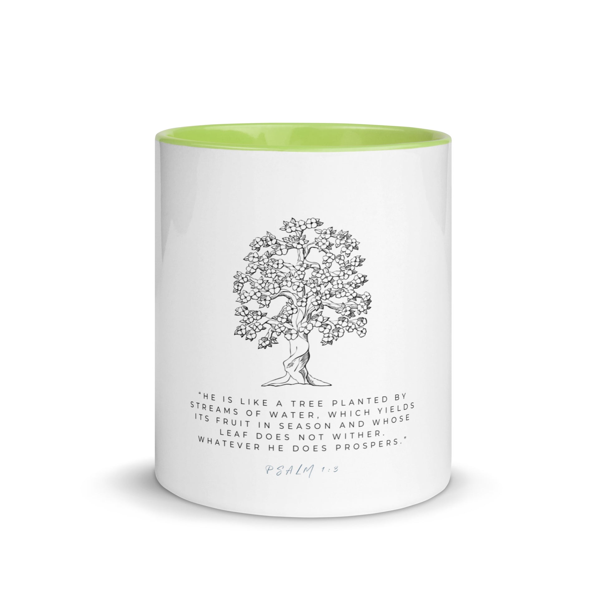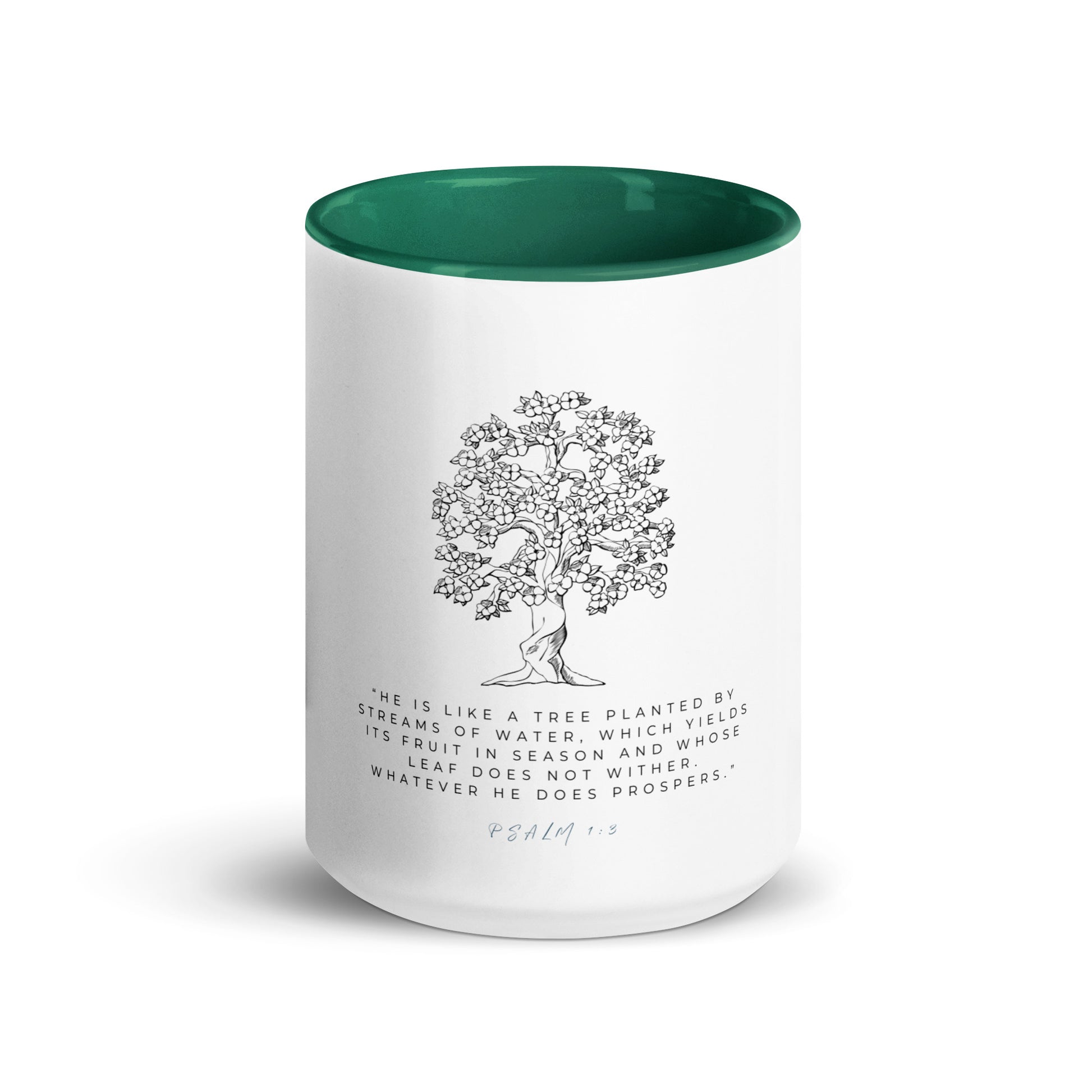 Add a splash of color to your morning coffee or tea ritual or make it an encouraging gift for someone. These ceramic mugs not only have a meaningful design on them, but also a colorful rim, handle, and inside. The design features a tree sketch coupled with the bible quote from Psalm 3:1 using the symbolism of a tree that propers.