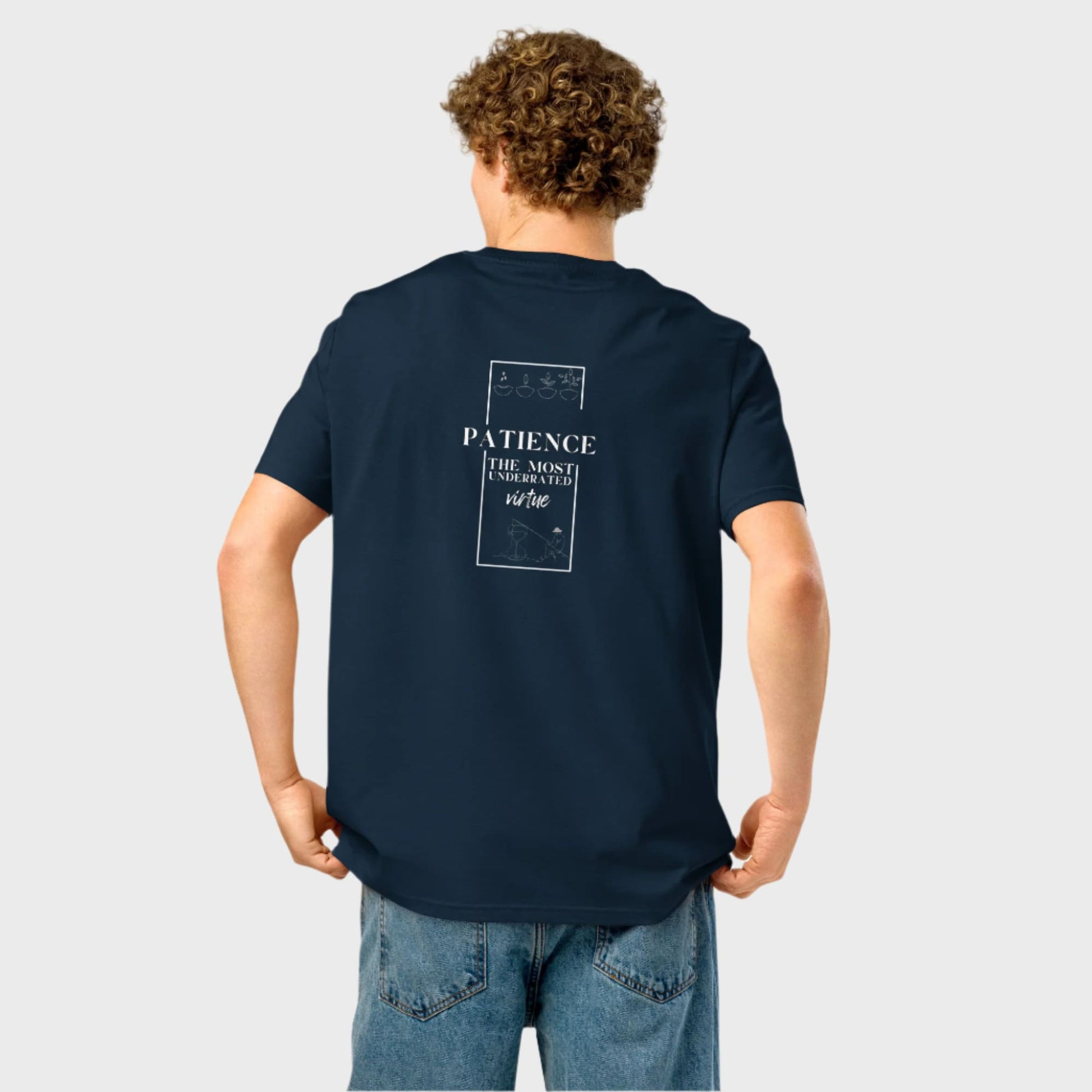 Make a difference with our comfortable virtue t-shirt, "Patience", made from 100% organic combed ring-spun cotton, which makes it breathable, durable and eco-friendly.
